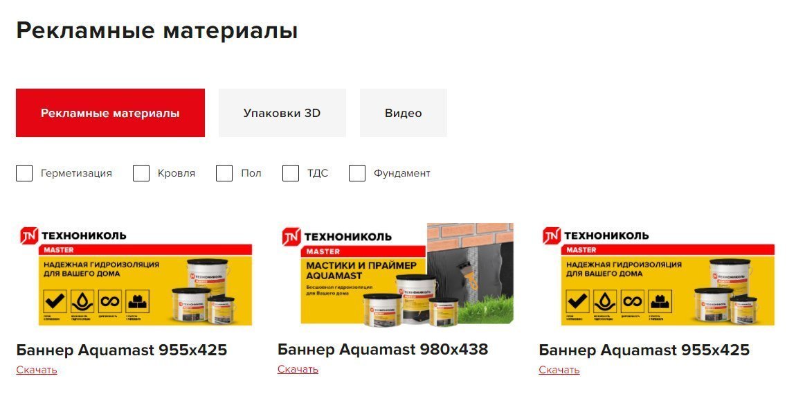 Также реализованы разделы с эксклюзивным дизайном: рекламные материалы, инструкции по монтажу, статьи с возможностью скачать документы и фильтрацией.