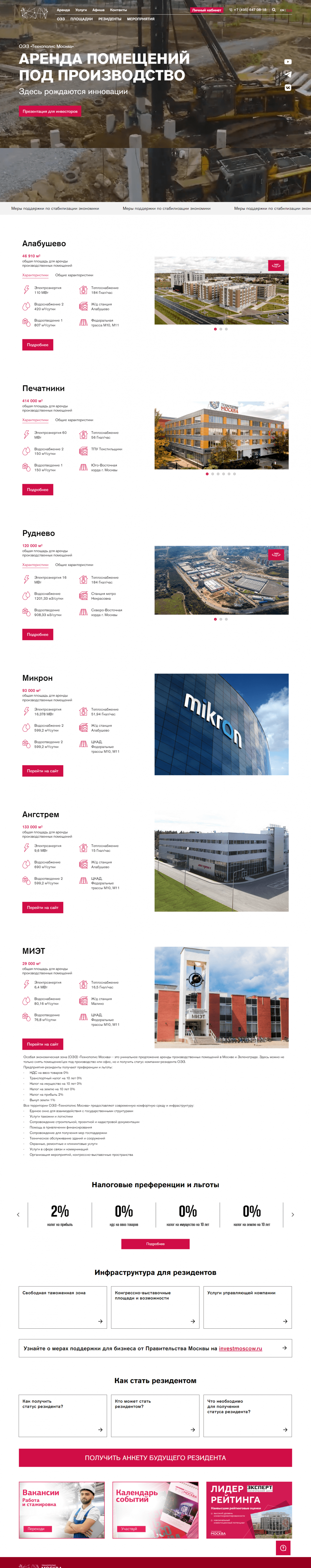 Создание сайта для привлечения инвесторов в ОЭЗ Технополис Москва и для обслуживания текущих резидентов технопарка