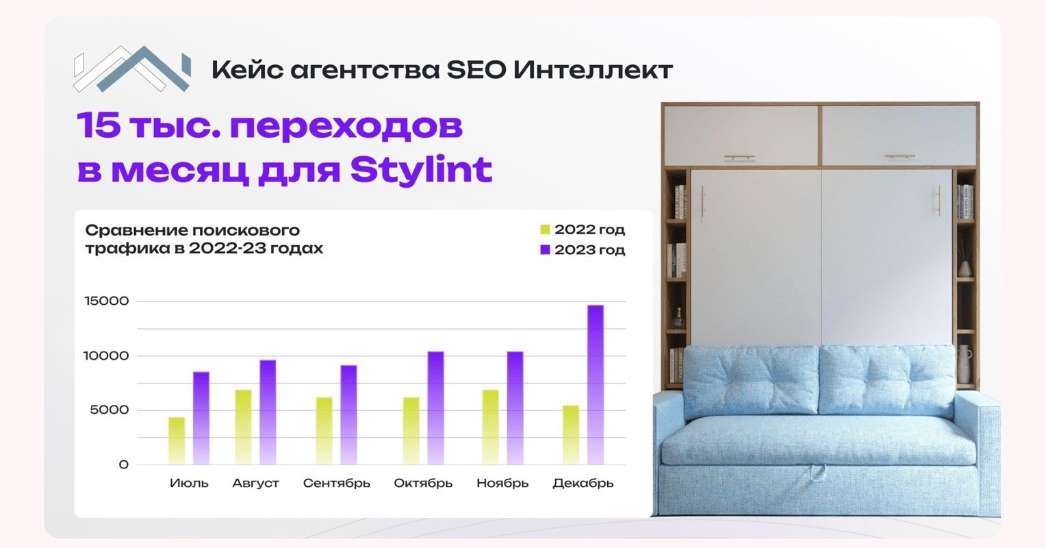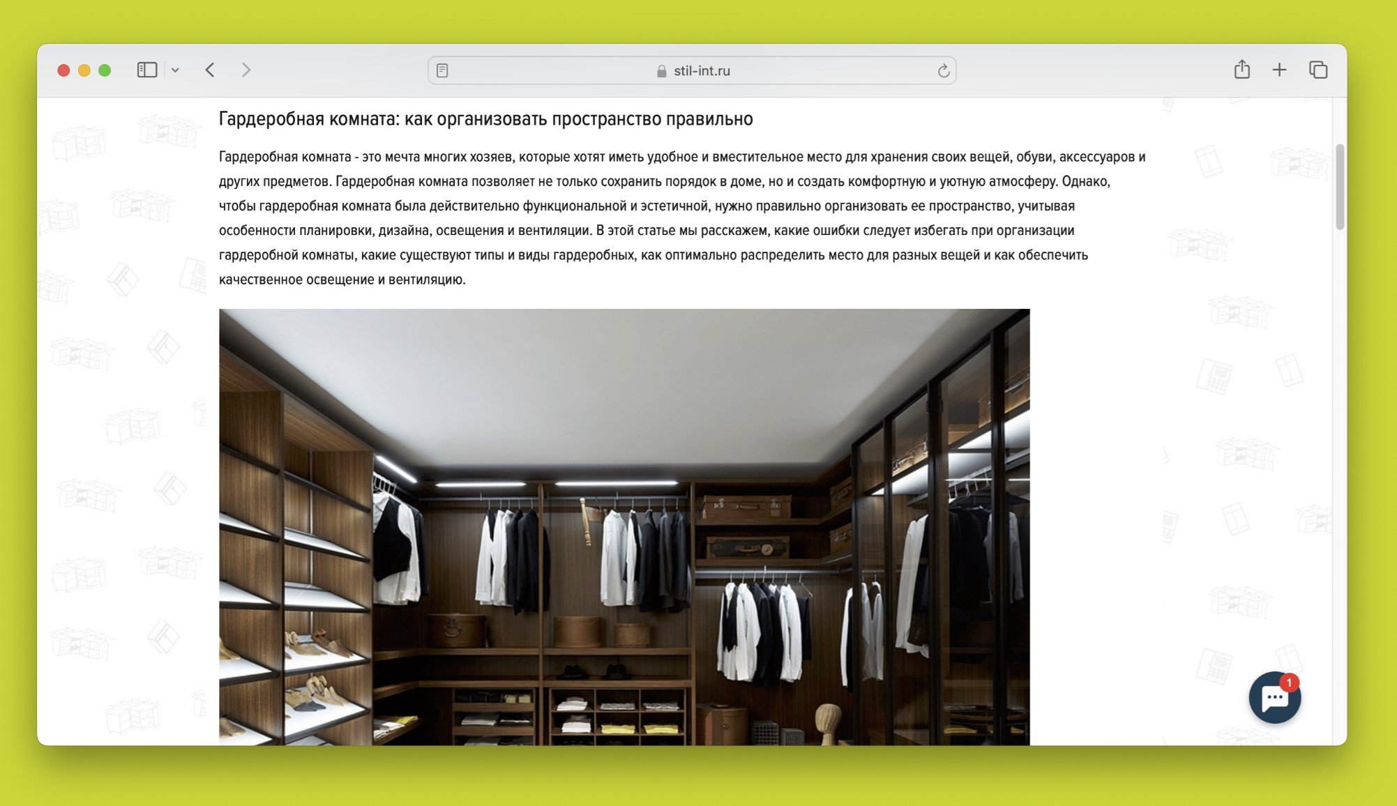 Создали раздел со статьями и написали материалы, которые интересны потенциальным покупателям умной мебели. Теперь, когда пользователи гуглят, как организовать гардеробную, то видят ссылку на текст на сайте клиента и читают нашу статью. Если им нравится — могут оформить заказ прямо на Stylint. Или, по крайней мере, познакомится с брендом и запомнить его.