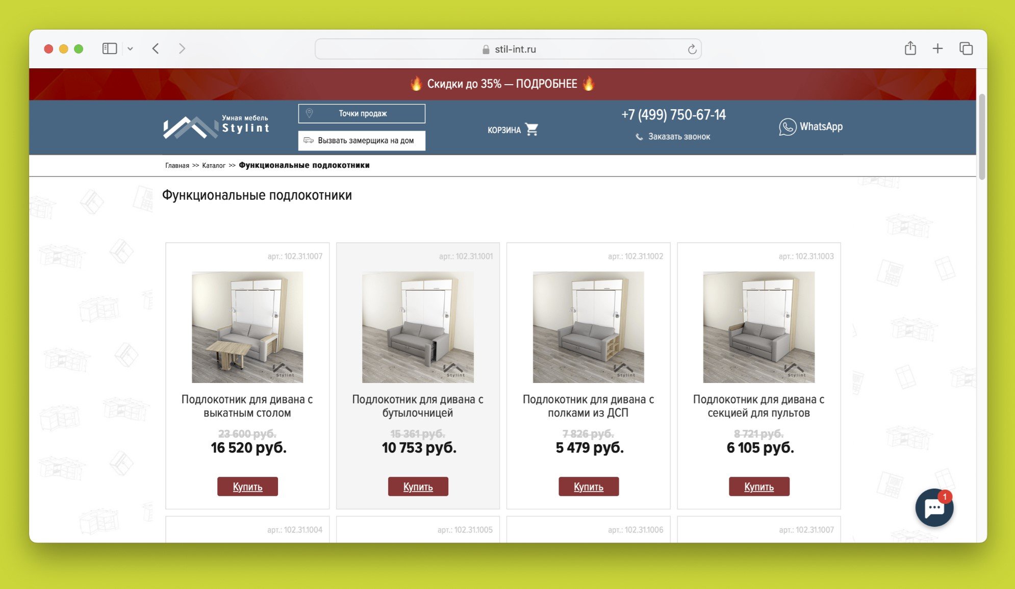 Создали сотни новых посадочных страниц, чтобы отработать запросы пользователей. Например, отдельно создали страницу с функциональными подлокотниками и еще множество посадочных под разные запросы.