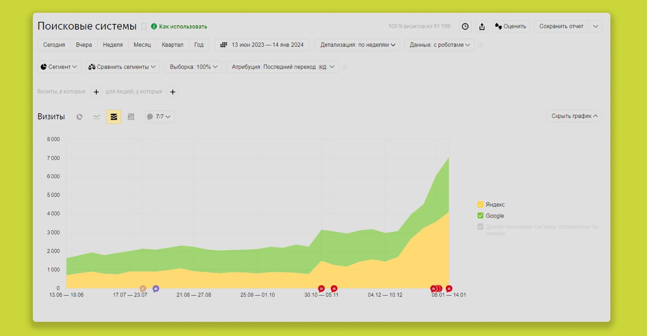 Продолжаем работу по увеличению роста трафика из поисковых систем