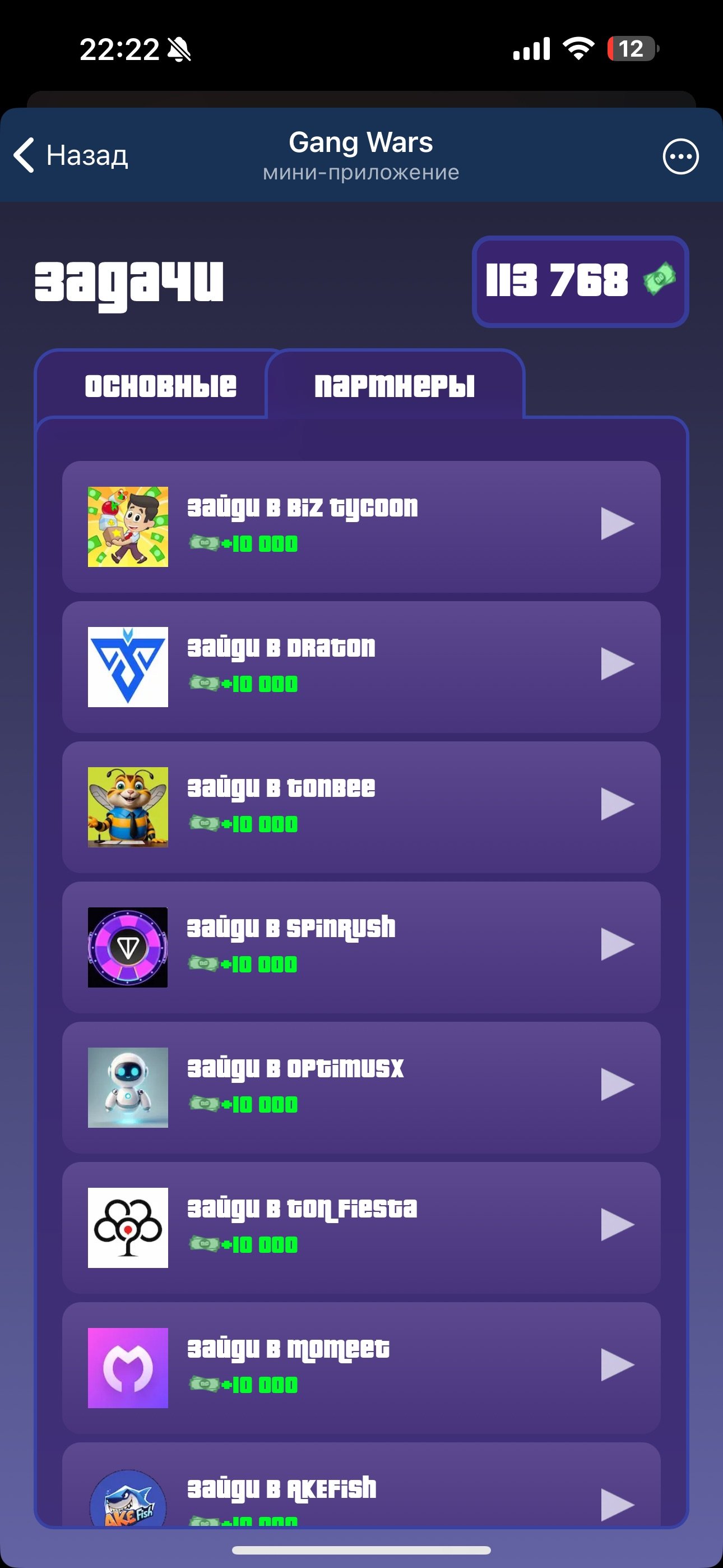 • Система заданий и наград: выполнение условий (победы, подписки, переходы по реферальной ссылке, ежедневные входы и т. д.) приносит бонусы.