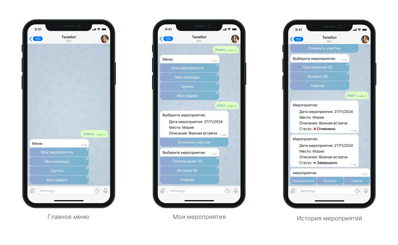 В случае изменений по мероприятию, все задействованные работники немедленно получают уведомления в боте.