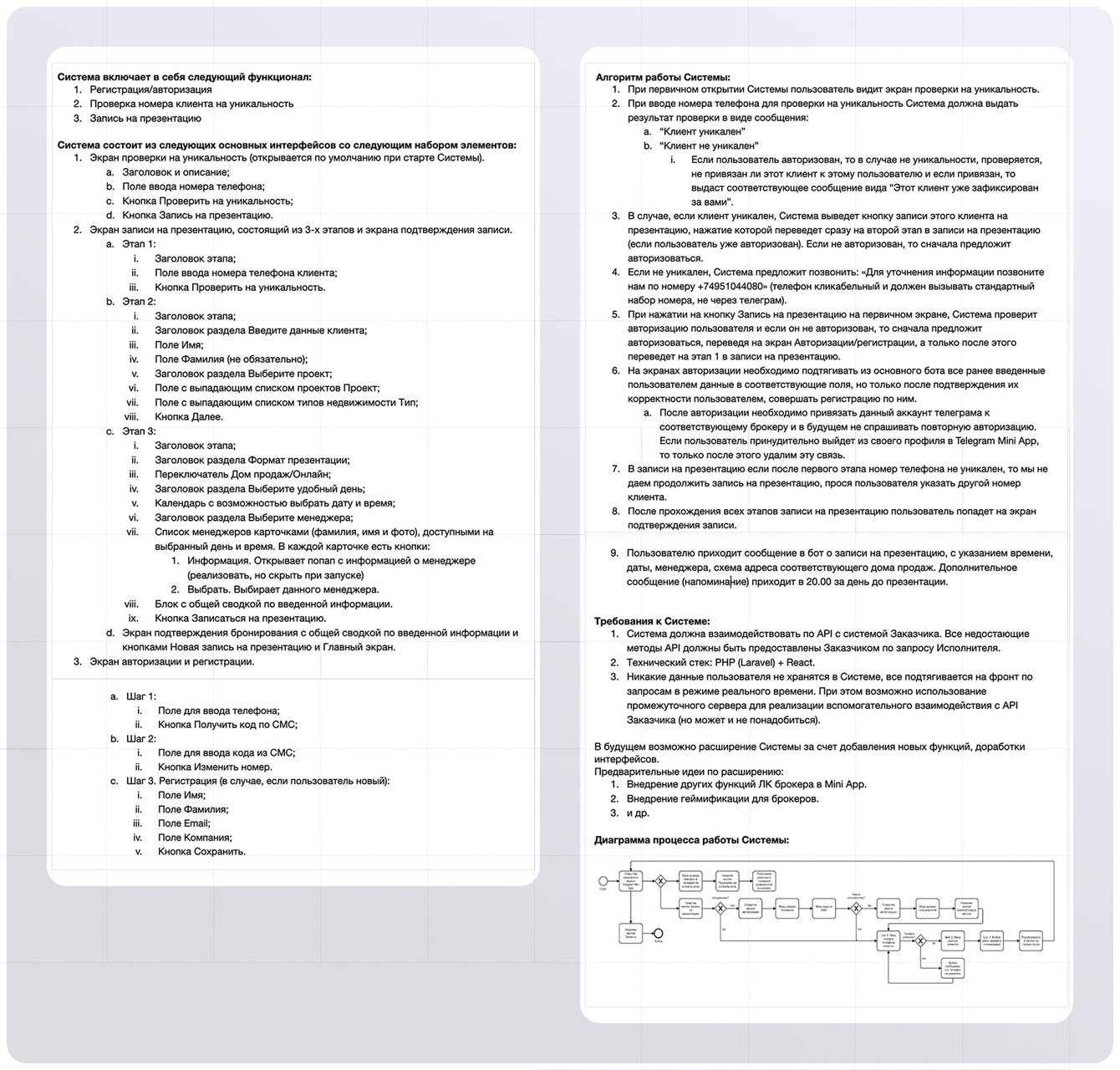 2. Собрали ТЗ на будущий продукт: расписали все сценарии взаимодействия с Mini App и пошагово описали процесс нашей работы.