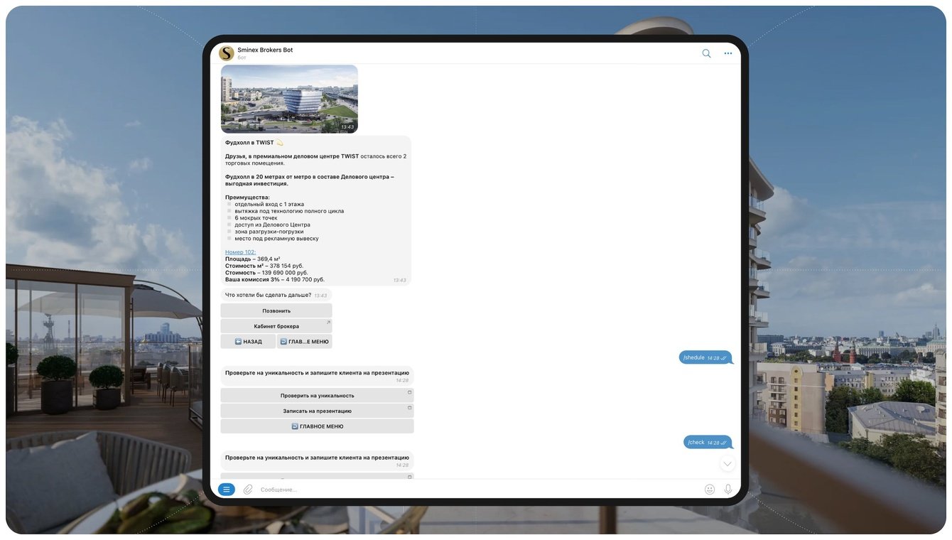 Чтобы повысить лояльность брокеров и получить конкурентное преимущество, Sminex решил создать Telegram-бота, который: