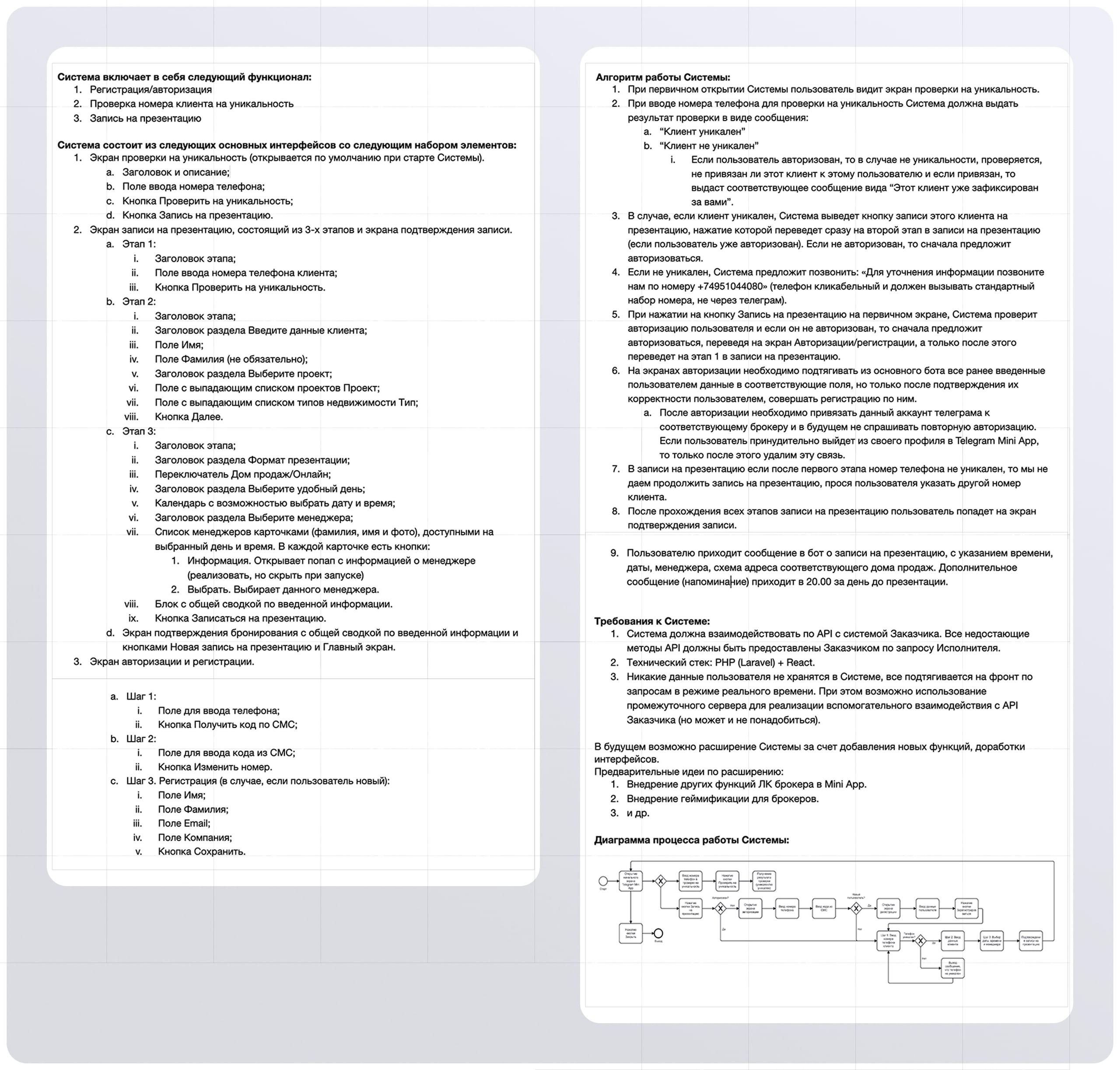 2. Собрали ТЗ на будущий продукт: расписали все сценарии взаимодействия с Mini App и пошагово описали процесс нашей работы.