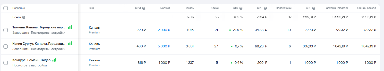- Настройка кампании с учётом тематичности каналов и точного попадания в целевую аудиторию.