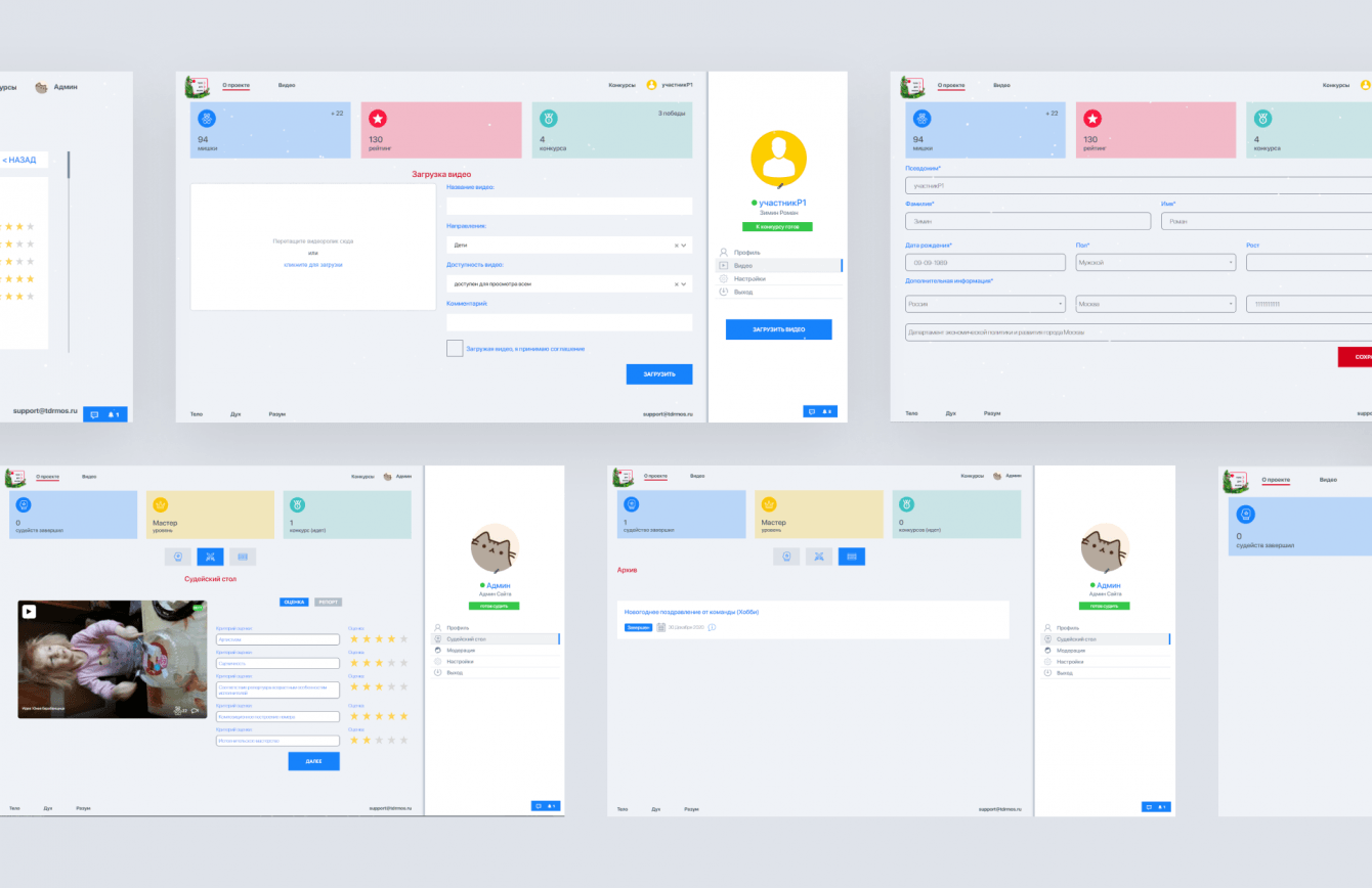 Создали интерактивный портал с личным кабинетом для проведения видео-конкурсов. Разработали функционал для судей, болельщиков и участников. Предусмотрели автоматический механизм движения конкурсов по статусам и соответствующую работу портала по ролям пользователей на каждом этапе.
