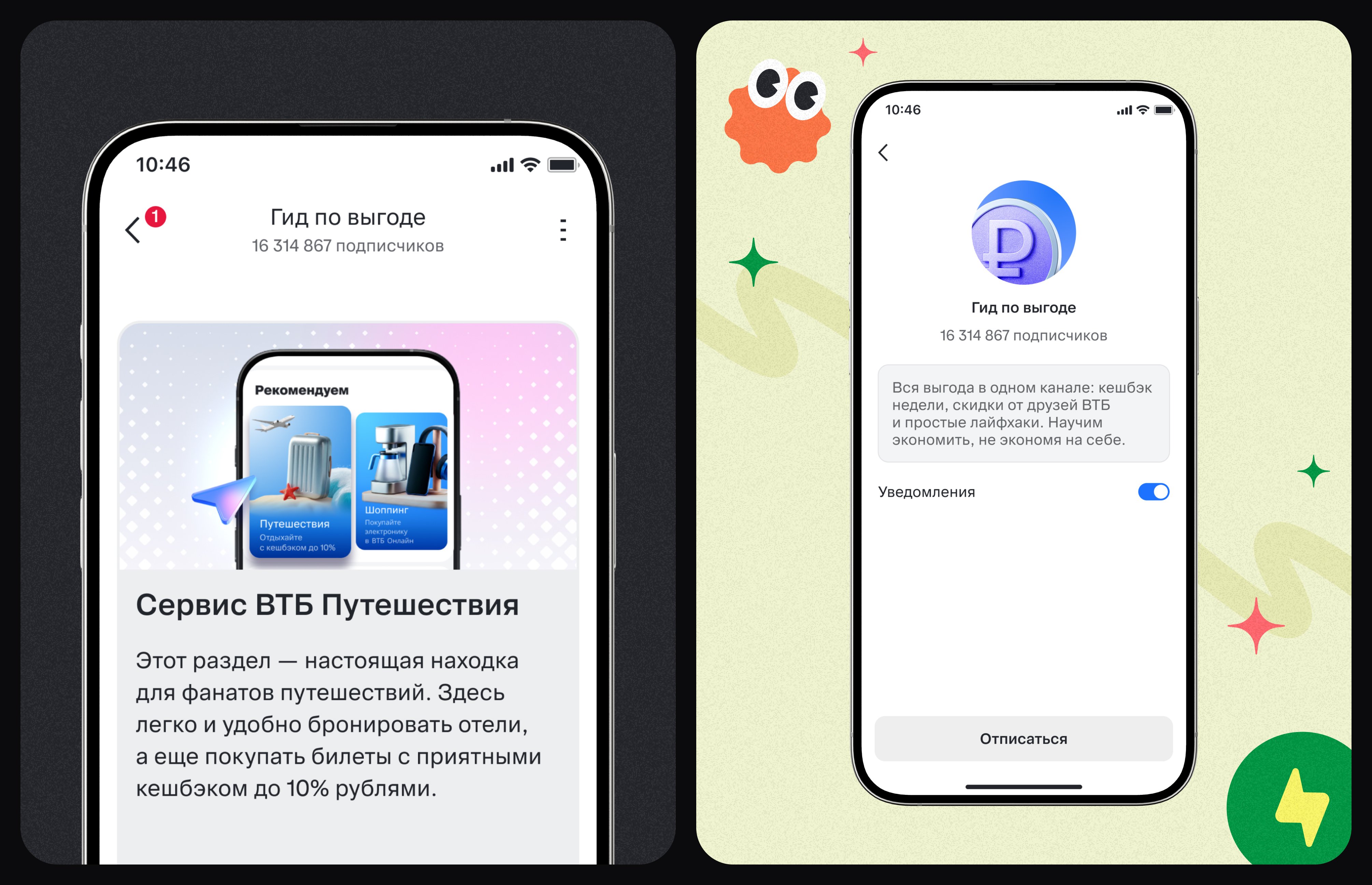 Ключевое преимущество «Каналов» — возможность не только информировать, но и сопровождать клиента по всему пути: от знакомства с контентом до оформления продукта через чат-бот и другие разделы приложения. Это снижает нагрузку на поддержку и повышает эффективность коммуникаций.