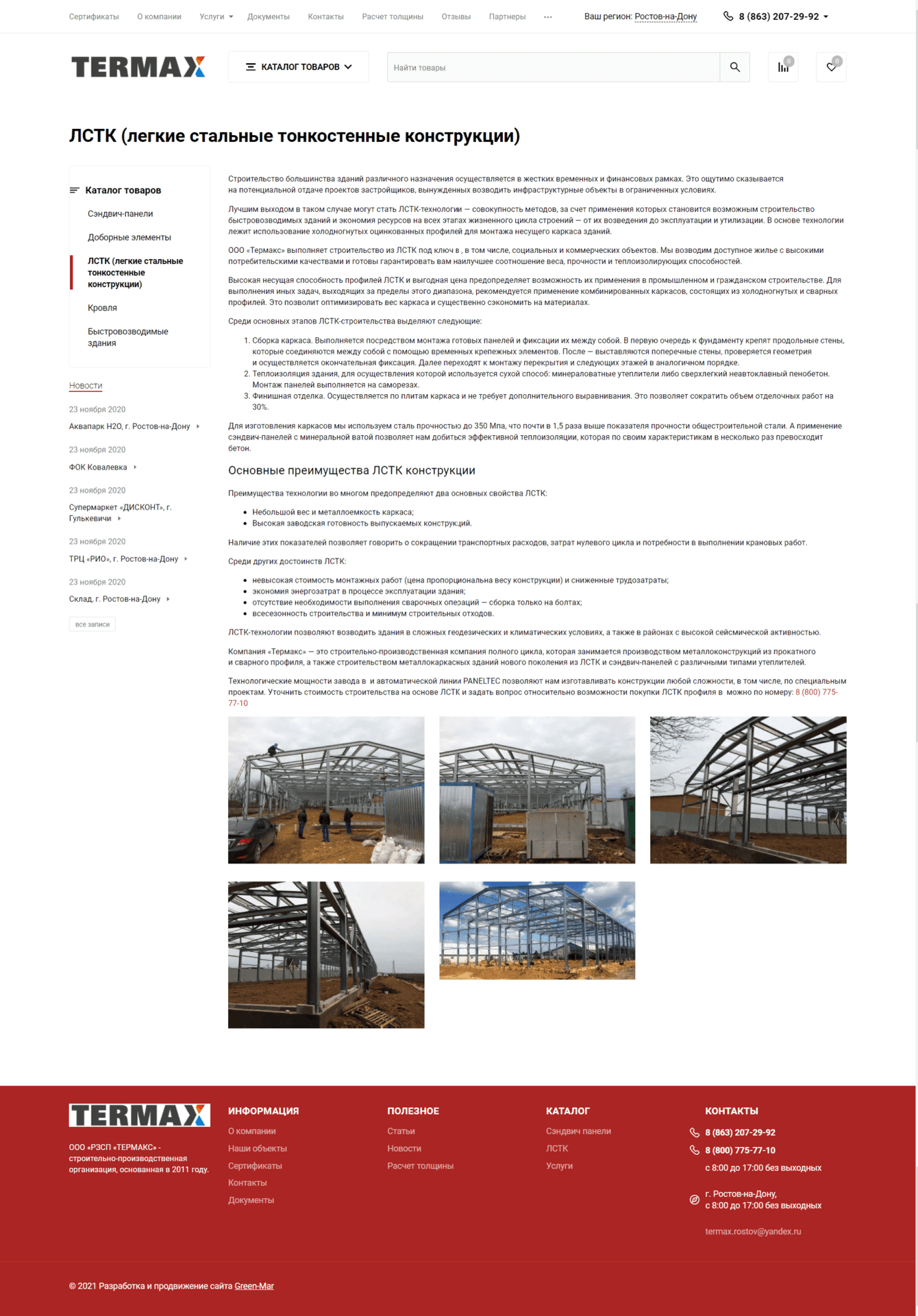Клиент: ООО «РЗСП «ТЕРМАКС» занимается производством и монтажом многослойных сэндвич-панелей, а также фасонных изделий к ним.