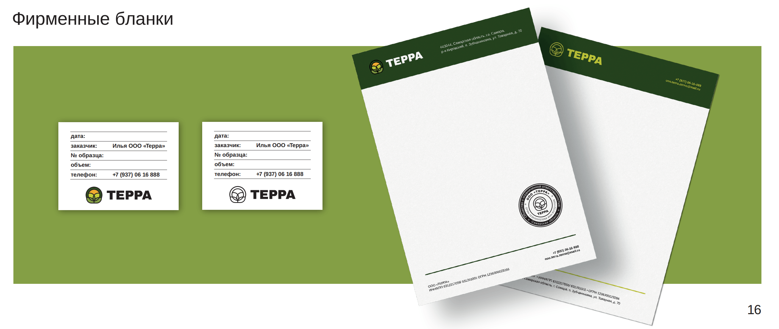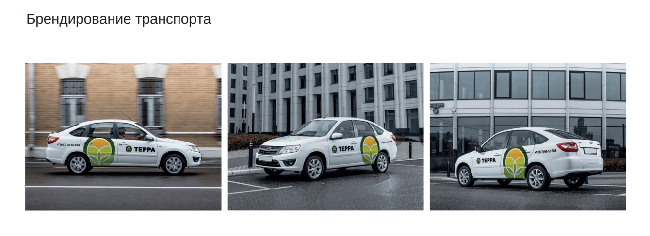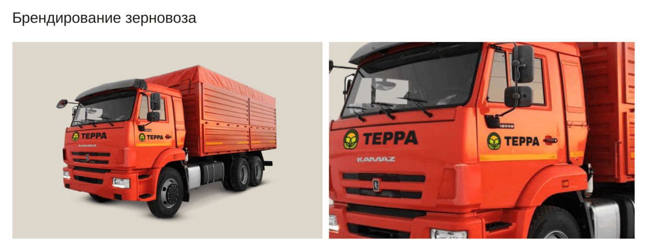 Далее разработали первые носители в фирменном стиле: визитка, брендирование грузового и легкового автомобиля, форма сотрудников, фирменный бланк компании, карточка компании, этикетка на продукцию, коммерческое предложение.