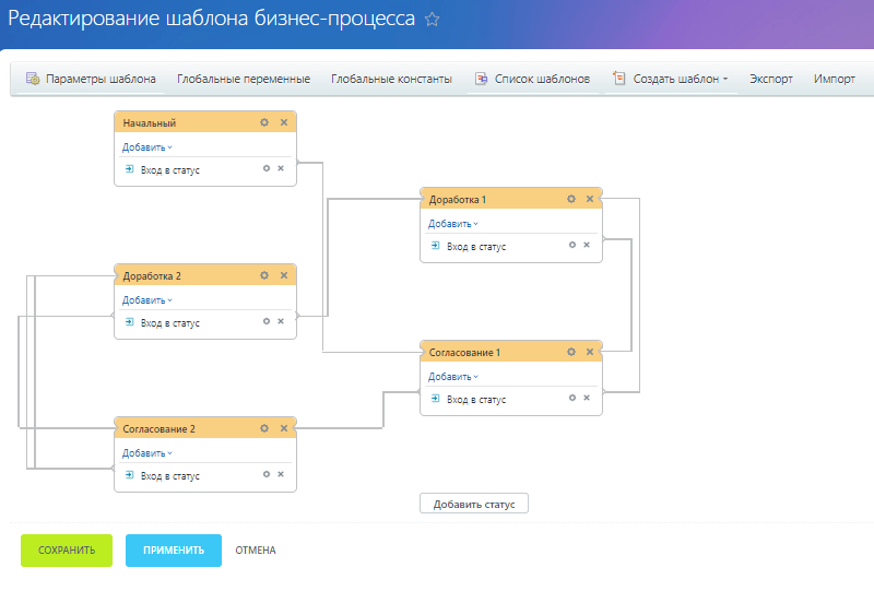Бизнес-процесс был создан внутри системы Bitrix24 с учетом всех этапов согласования. Каждому этапу был присвоен свой набор действий, автоматизирующих проверку и утверждение добавленного документа.