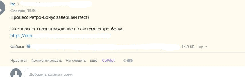 В процессе работы с бизнес-процессом система Bitrix24 генерирует системные уведомления, которые информируют участников о текущем статусе процесса. Это позволяет каждому участнику всегда быть в курсе, на каком этапе находится процесс согласования и что нужно сделать дальше.