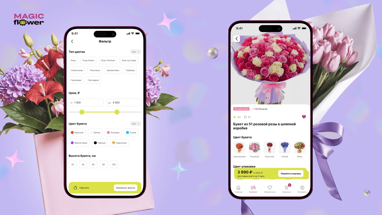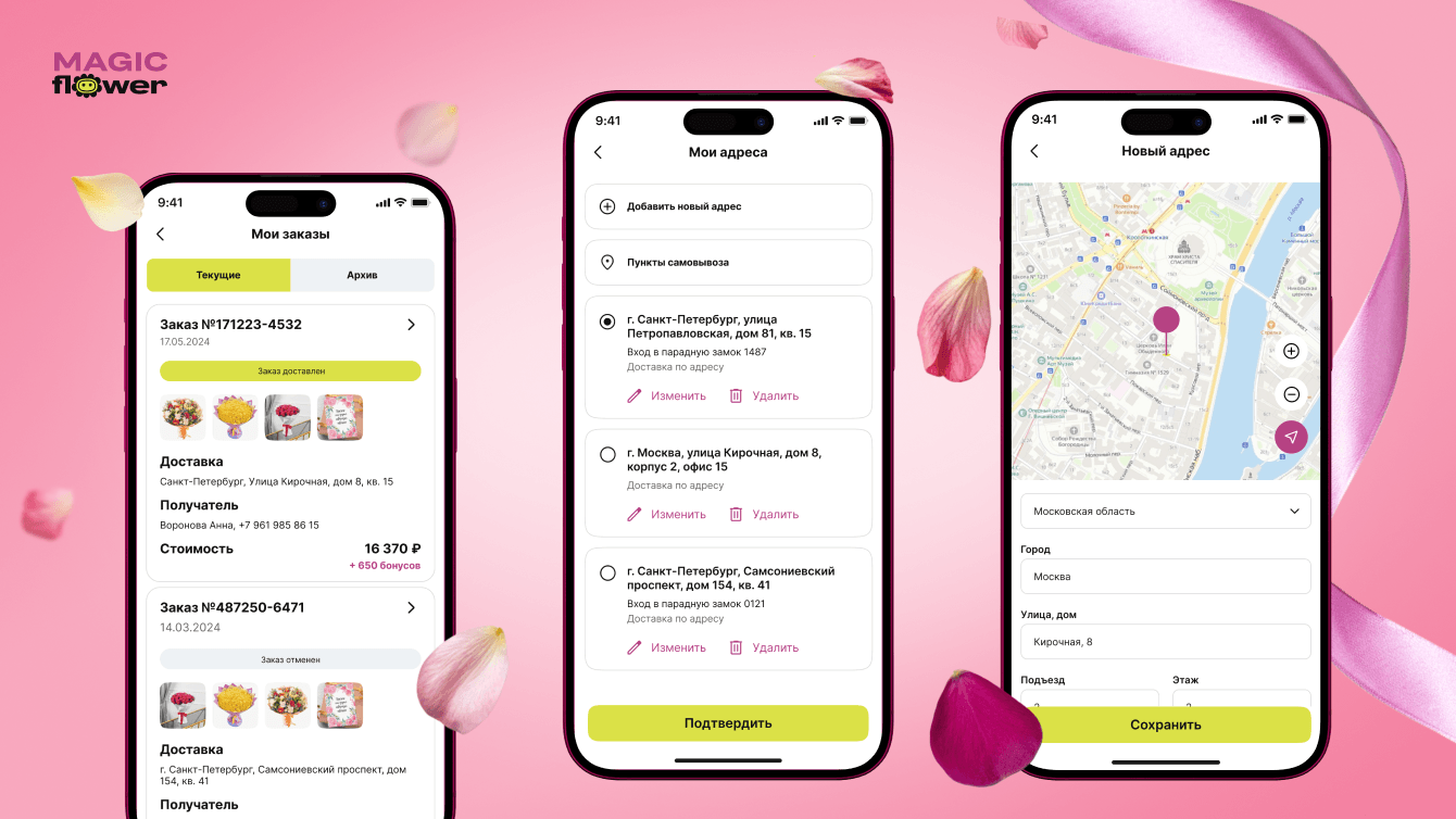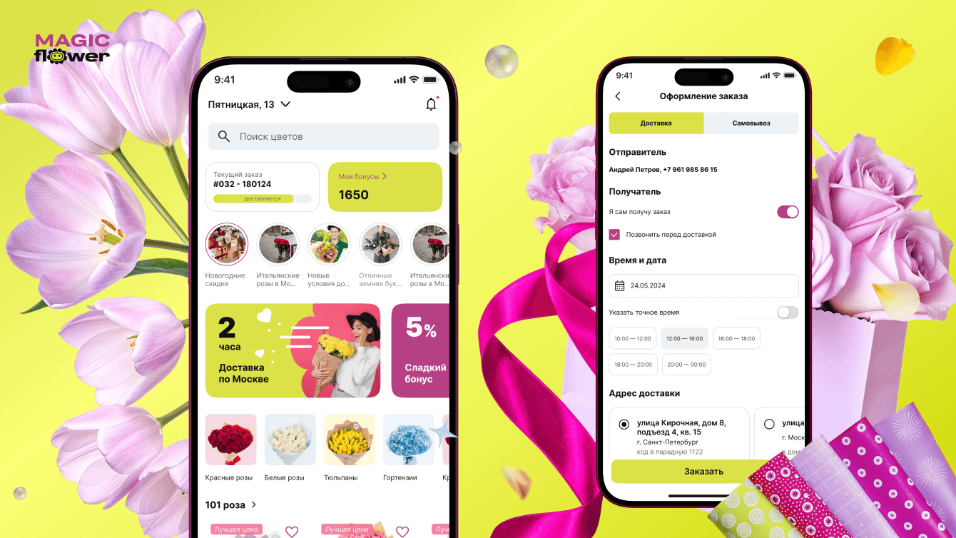 В начале мы занимались только техническим сопровождением сайта Magic Flower. Но всё изменилось, когда наши специалисты отразили злонамеренную DDos-атаку накануне 8 марта: после этого Magic Flower доверили нам полное сопровождение сайта, а также обратились за доработкой UX и UI мобильного приложения.