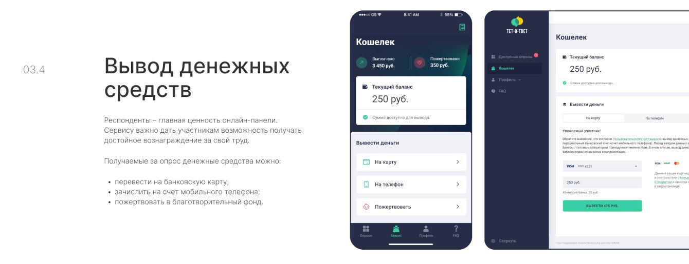 - Разработка функционала вознаграждений. Отвечая на вопросы, вы будете получать вознаграждение - его можно вывести на банковскую карту или счет мобильного телефона.