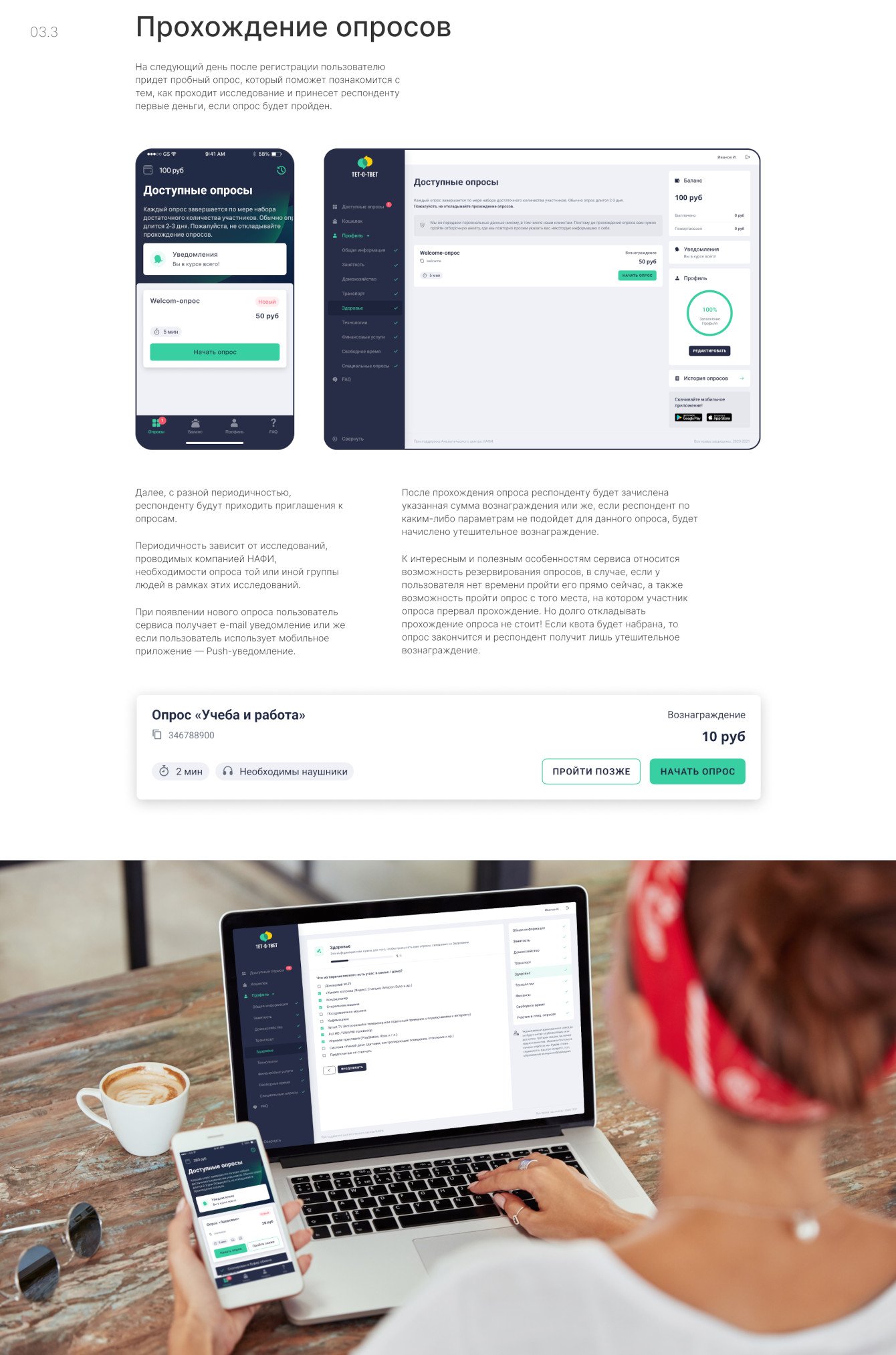 Сервис платных опросов, в котором пользователь участвует в опросах общественного мнения. Отвечая на вопросы, он получает вознаграждение, которое можно вывести на банковскую карту, счет мобильного телефона или помочь нуждающимся - пожертвовать в благотворительный фонд.