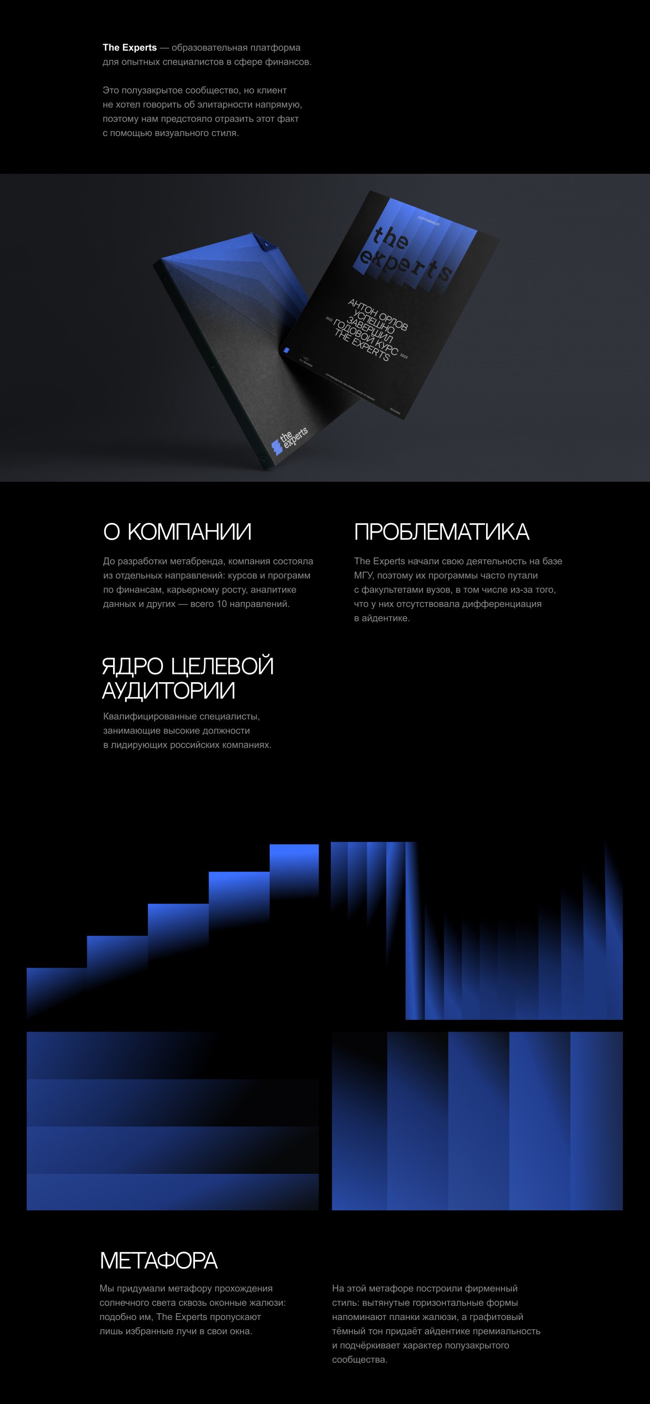 Разработать бренд и систему айдентики суббрендов для образовательного сообщества в сфере финансов, сместить фокус с образования на экспертное сообщество.