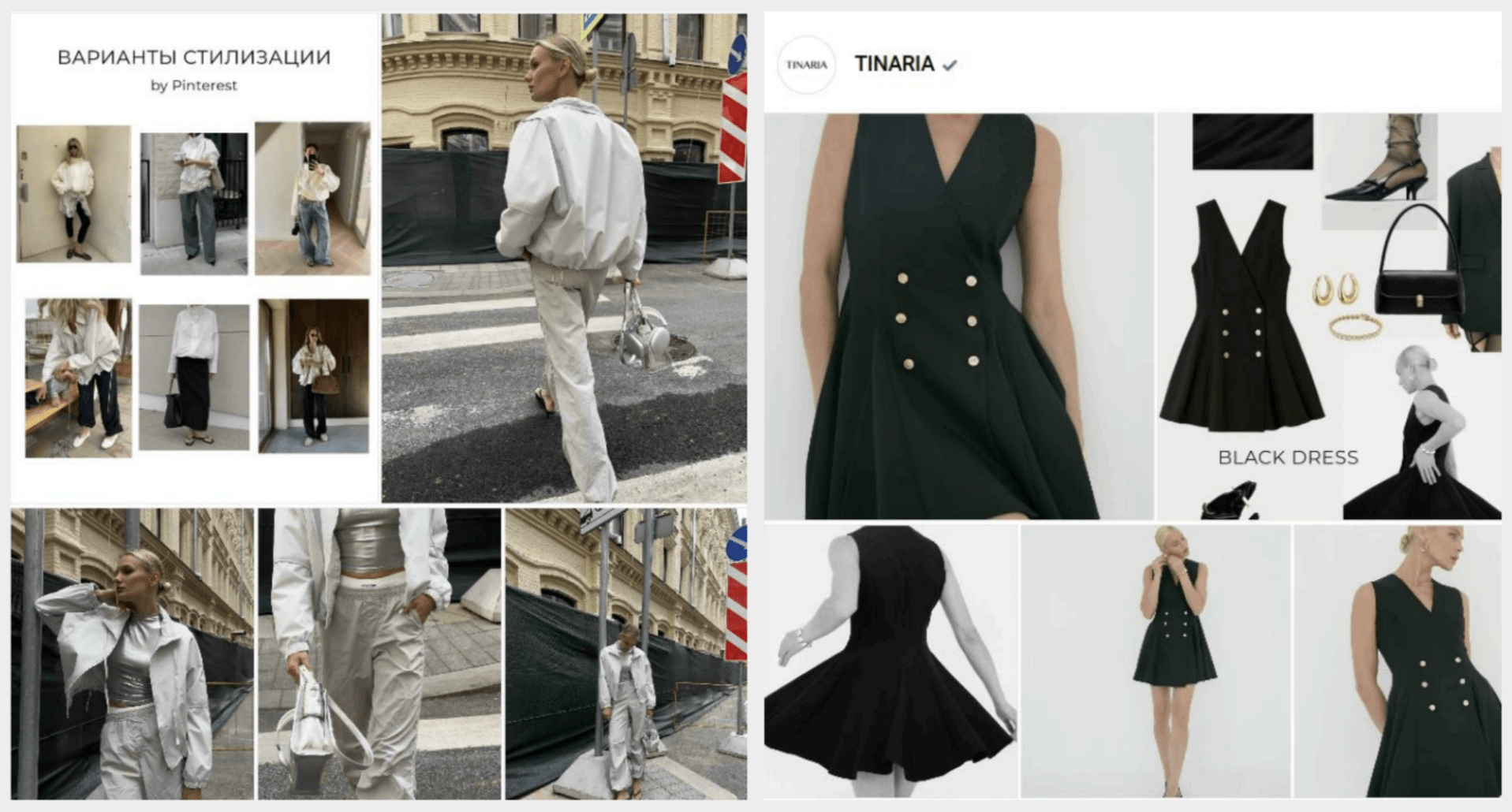 >Использовали коллажи + позже добавили видео в лайв-формате (луки, цены, обзоры прямо из магазина).