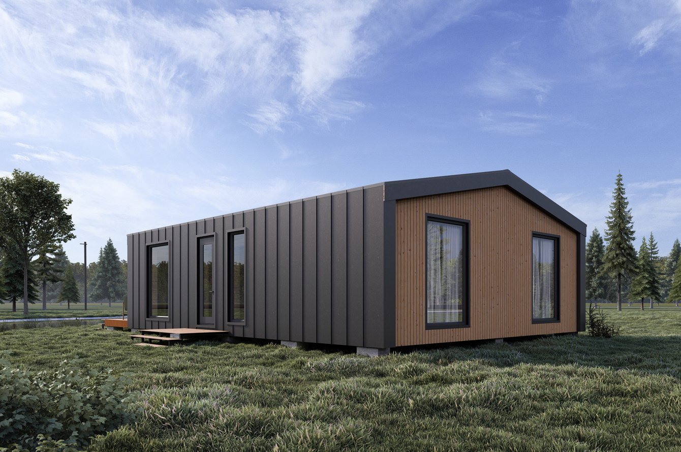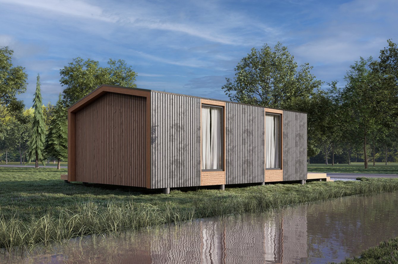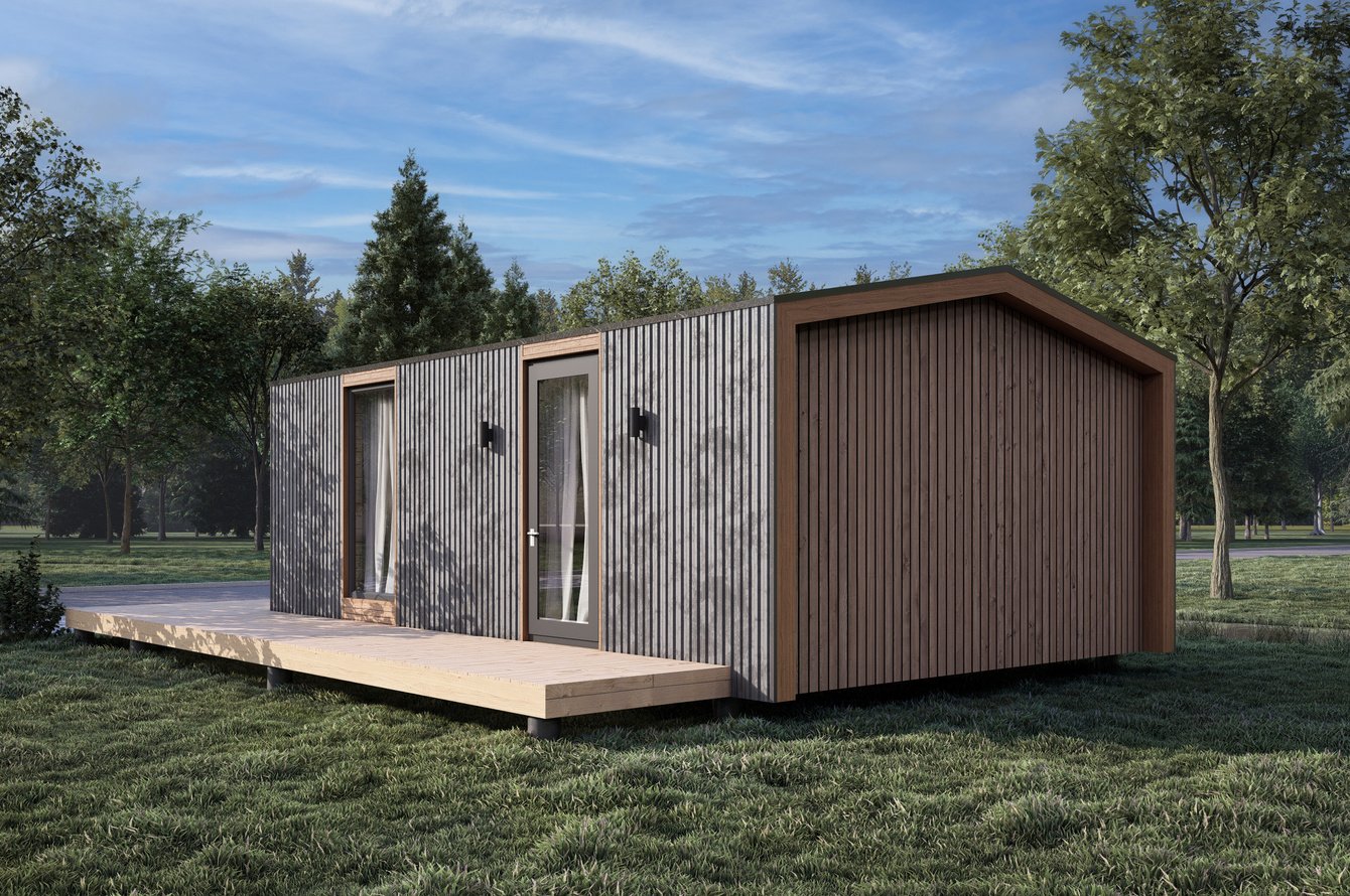 Разработана стильная визуализация компактного гостевого домика площадью 15 кв.м в современном скандинавско-экологичном стиле.