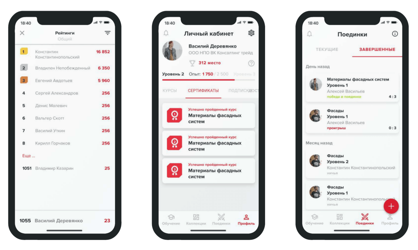 - Система рейтингов, уровней знаний, поощрений, получения сертификатов обучения