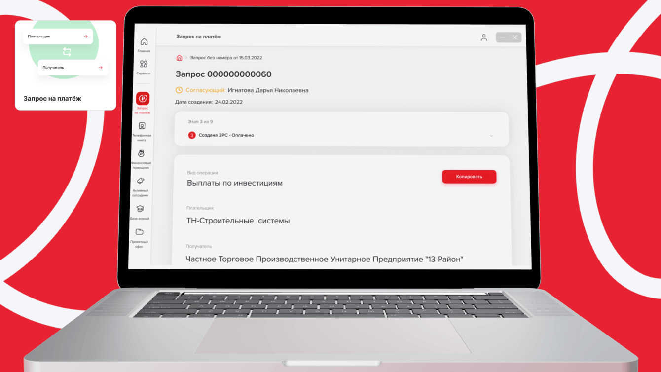 Сервис для проведения затратных платежей. Сотрудники могут создавать заявки на платежи, а также отслеживать их статус.