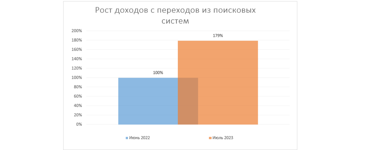 Рост доходов проекта с переходов из поисковых систем за период июль 2022 – июль 2023 года составил 79%.
