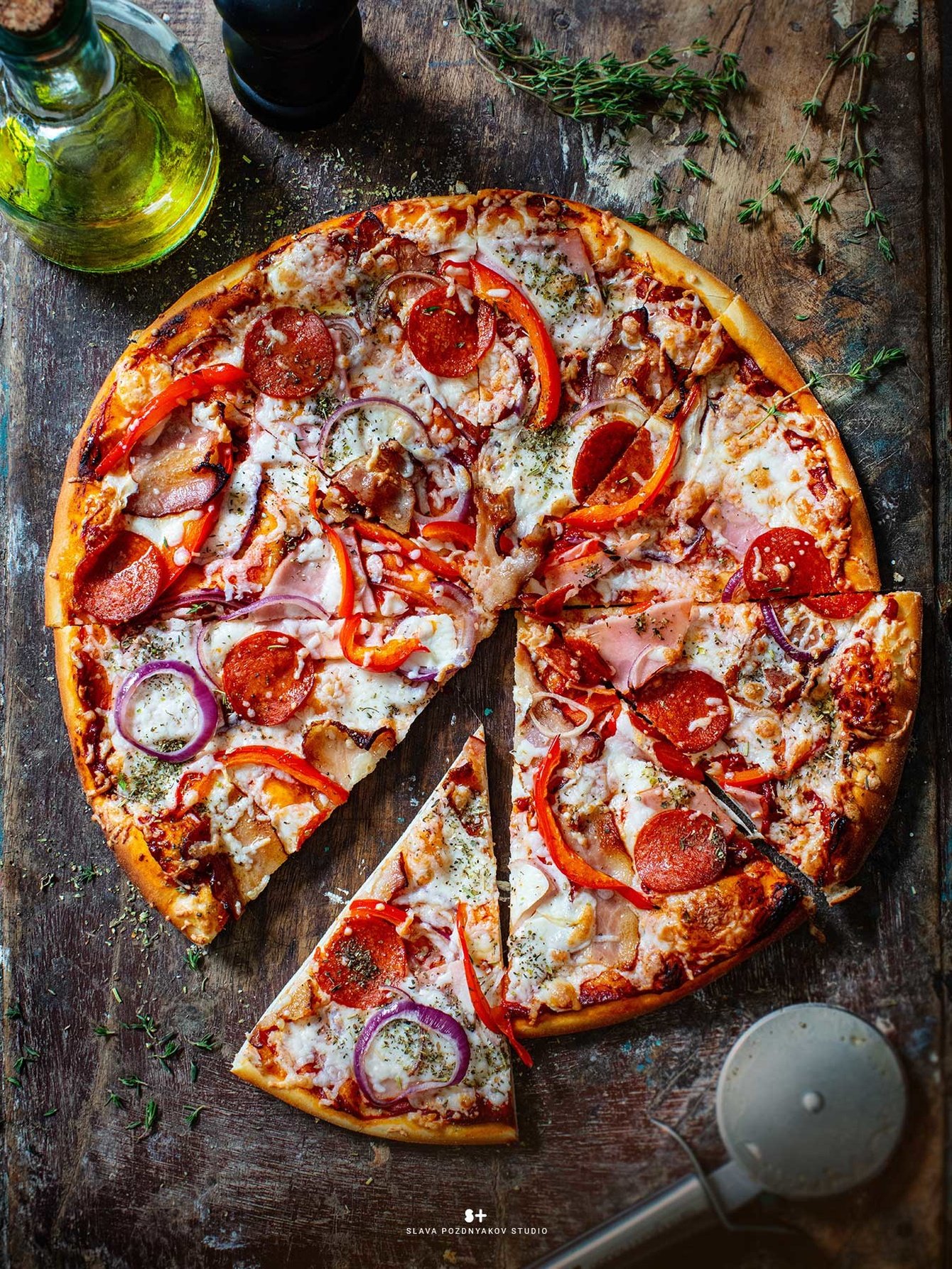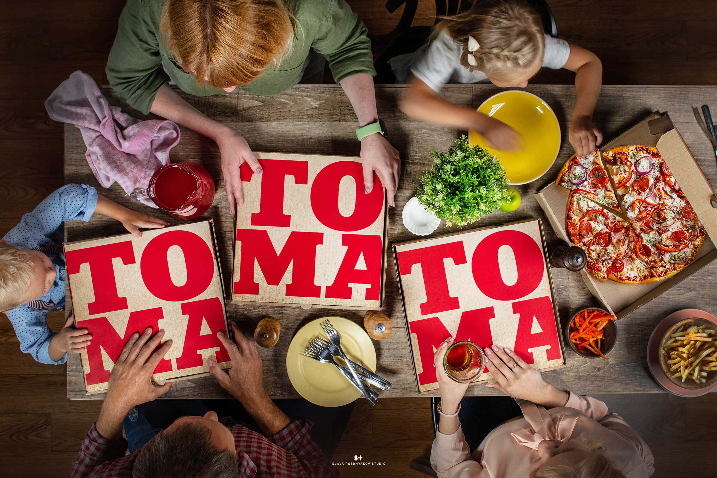 Сеть пиццерий ТОМАТО обновила меню. Для этого потребовалось тщательно продумать концепцию и стиль фотосъемки, разработать подачу блюд, создать композиционные фотографии для различных разделов меню, а также организовать рекламную фотосессию с моделями для продвижения сети.