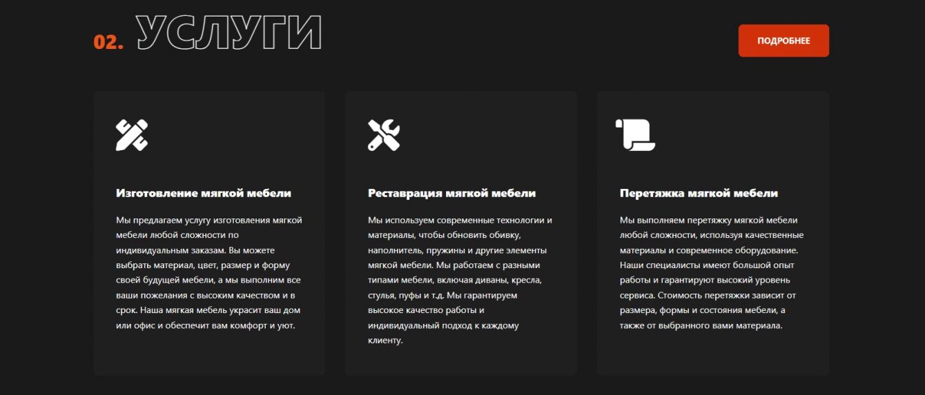 Темные коричневые (ореховые) оттенки, активные кнопки, слайды/анимации. Широкое портфолио, притягивающие заголовки.