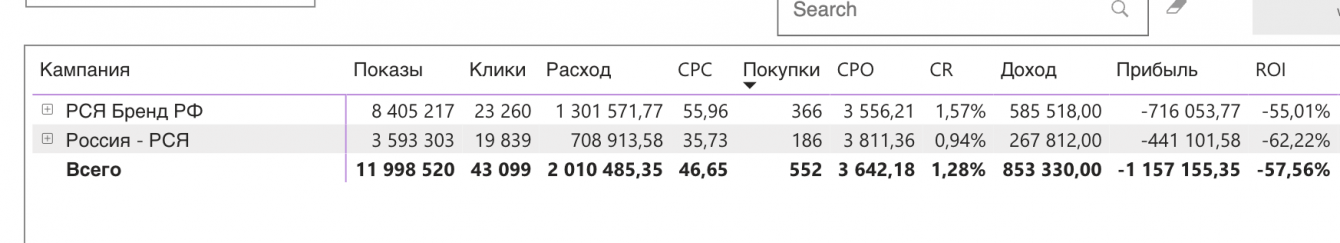 Практически все тесты РСЯ показывали отрицательный ROI: