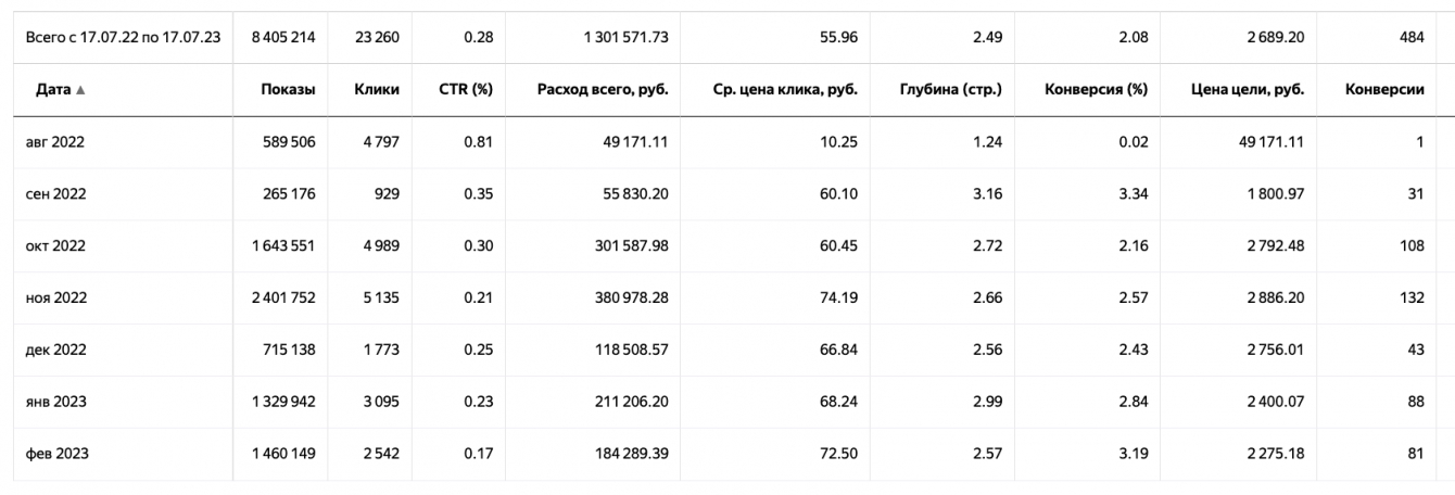 Использование тонких настроек с автообновлением аудитории показало высокую эффективность для бизнеса, в котором имеет значение сезонность. Позднее мы использовали такую же систему автоматизации для другого клиента — санатория.