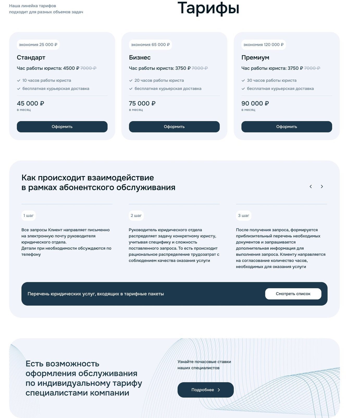 На основе данных, которые мы получили в результате маркетингового исследования, создали маркетинговый прототип главной страницы сайта и детальной страницы услуги. Поработали над логикой и структурой. Использовали Figma.