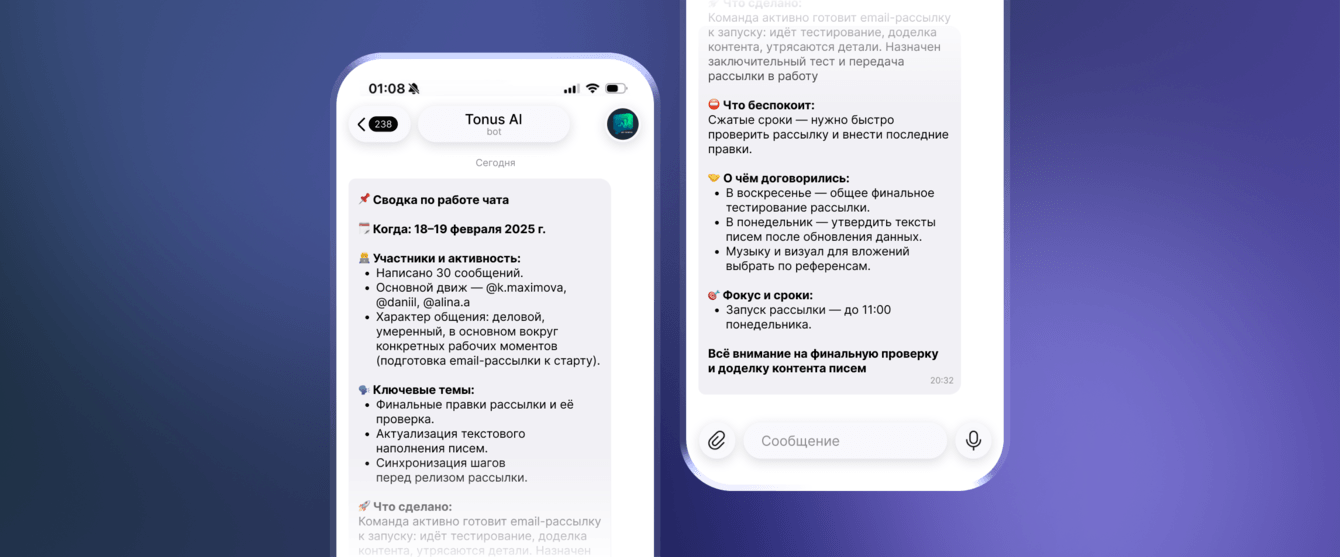 – руководство перестало вручную погружаться в десятки чатов каждый день;