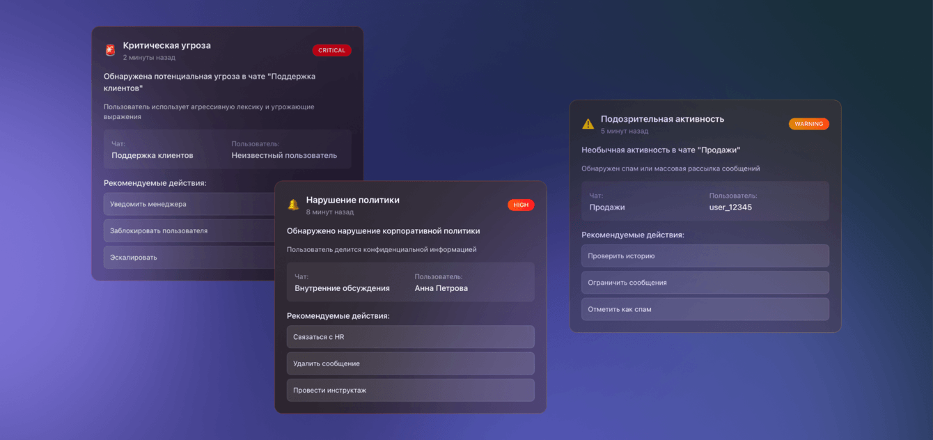 Раньше, чтобы не упускать такие сигналы, проектный директор вручную просматривал 30–50 клиентских чатов в день, отслеживая тон коммуникации, проблемные сообщения и ранние признаки конфликта. Такой подход отнимал много времени, зависел от одного человека и не масштабировался вместе с ростом бизнеса. Нам было нужно решение, которое позволит не читать все чаты подряд, но при этом вовремя находить именно те коммуникации, где назревает проблема и где цена ошибки максимальна.