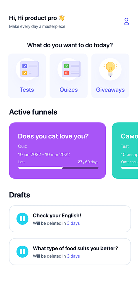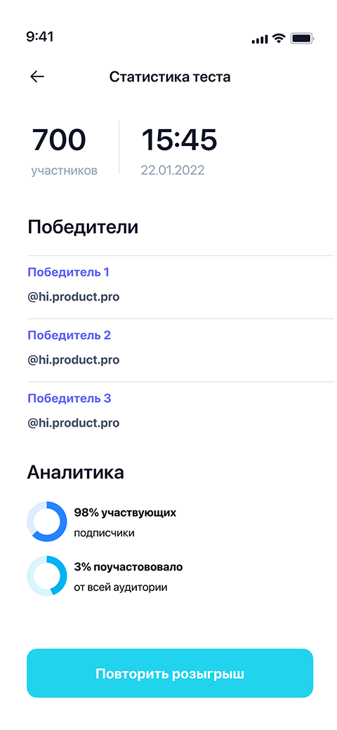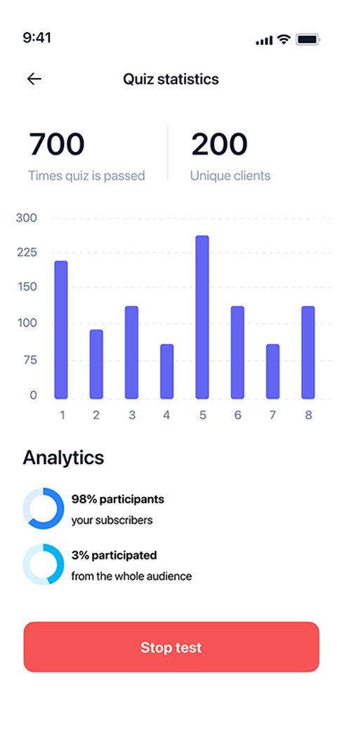 Было разработано превосходное мобильное приложение для развития социальных сетей. В нем клиент может проводить тесты и квизы для своей аудитории, после участия в которых, люди смогут выиграть различные призы или скидки.
