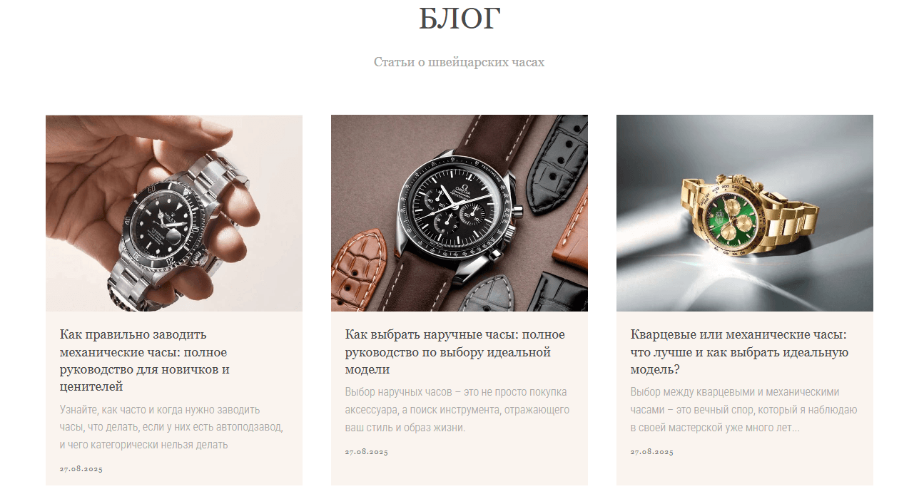 Были выбраны страницы брендов. Под каждый бренд часов создавали отдельную посадочную страницу. Тем самым на сайте появились страницы под семантику связанную с брендом часов. В то время у конкурентов ни у одного такого не было. Сейчас есть уже у многих )Это позволило увеличить целевой трафик + 35%.