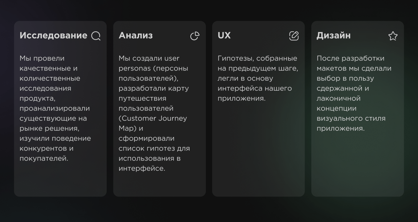 Для оформления интерфейса мы выбрали простые шрифты, без засечек и трендовые цвета. Это позволило нам разработать современный и удобный для пользователя дизайн.