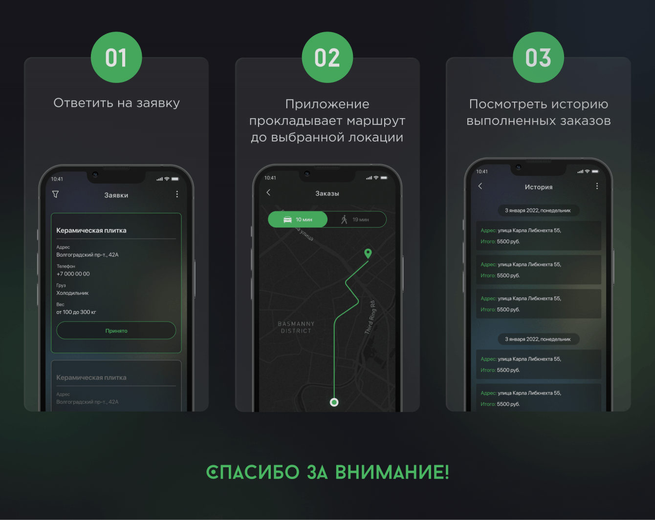 Результатом нашей работы является разработка инновационного мобильного приложения, которое эффективно связывает клиентов с ближайшими грузчиками, предоставляя удобный интерфейс для заказа услуг и бесконтактной оплаты, отражая нашу целеустремленную стратегию и глубокое понимание потребностей пользователей.