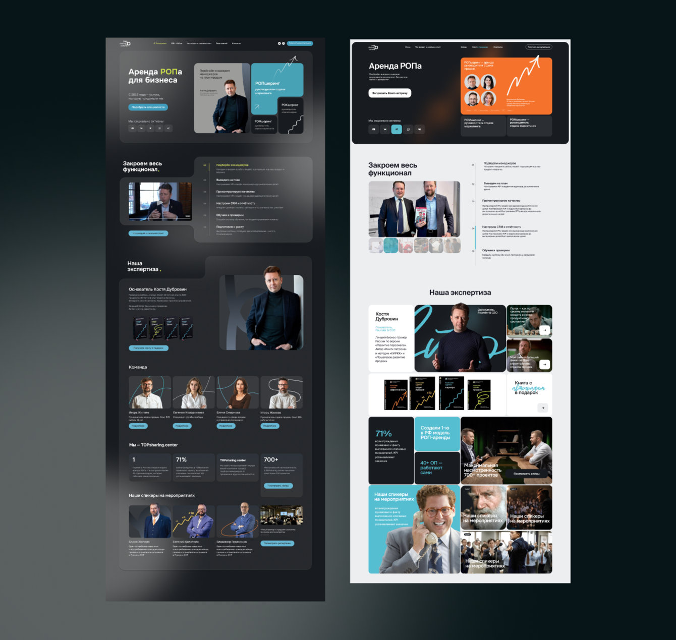 В итоге был выбран первый вариант с темной темой, более яркими и актуальными графическими элементами. Это вариант лучше передавал профессионализм и миссию компании, был более контрастным и имиджевым.