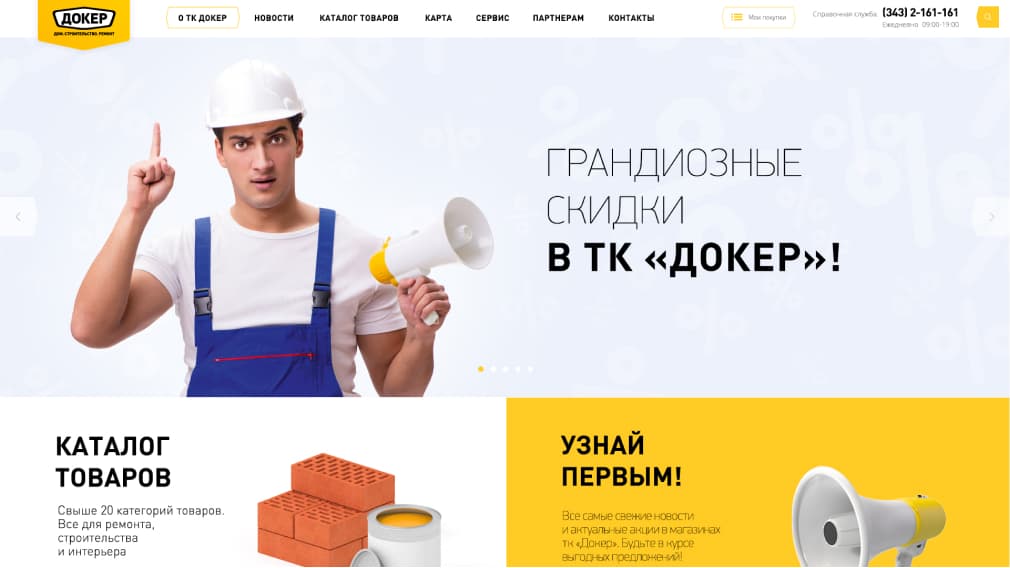 - Страничка “Контакты” построит маршрут от вашего текущего местоположения, до ТК “Докер”.