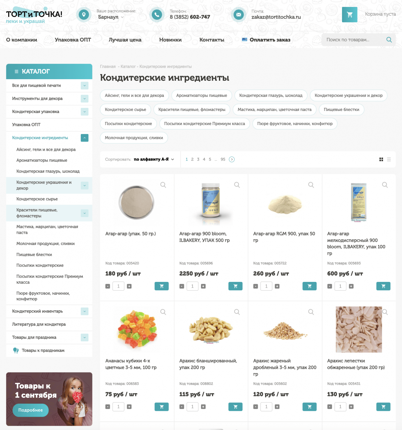 - Провели работы по SEO-продвижению, теперь любой пользователь может найти в поисковой выдаче компанию “Торт и Точка”.