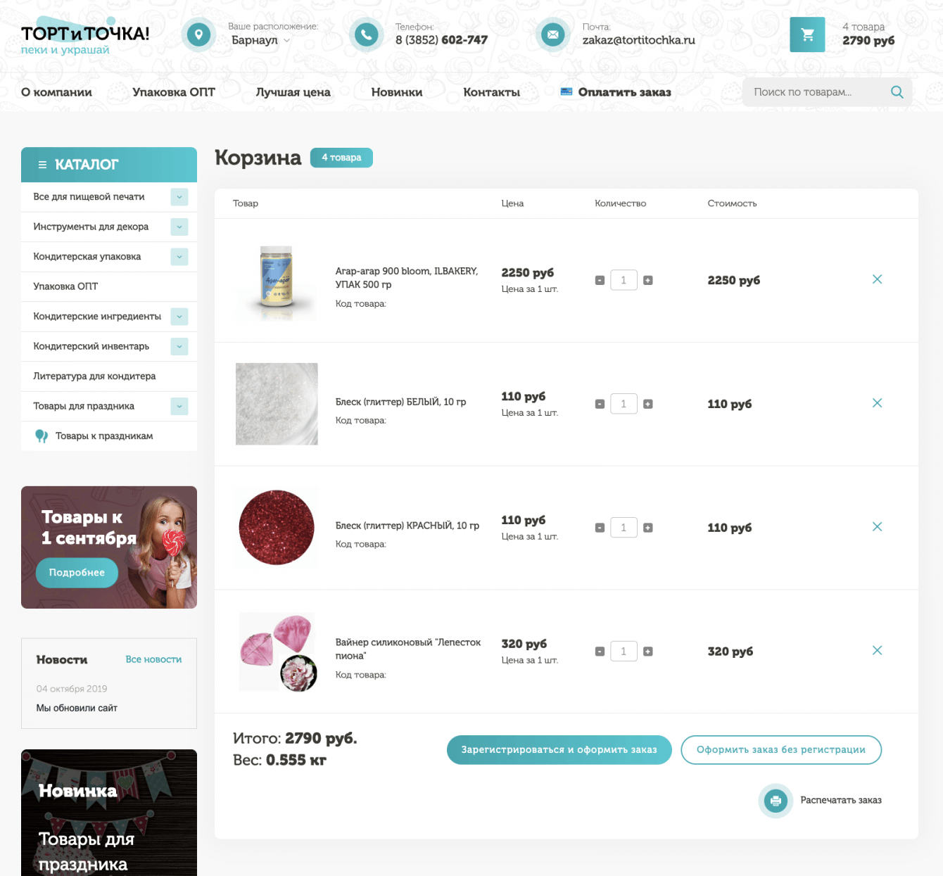 - Провели работы по SEO-продвижению, теперь любой пользователь может найти в поисковой выдаче компанию “Торт и Точка”.