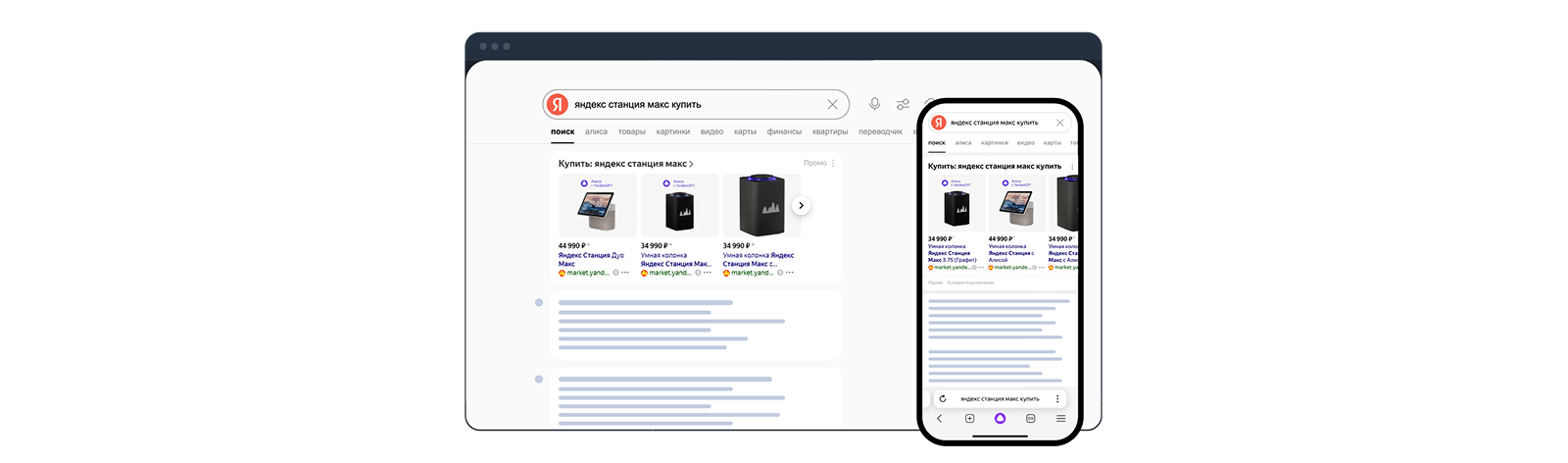 Товарные объявления формируются на основе ассортимента сайта или специального файла — товарного фида. Они показываются: