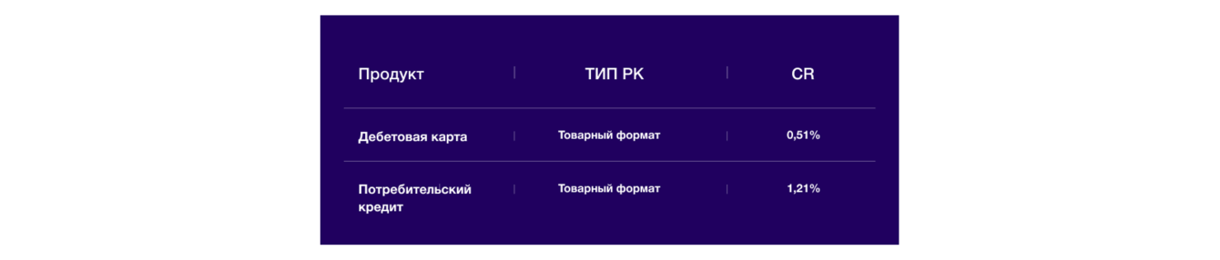 1. Адаптировать товарный формат рекламы под сегмент B2C для продвижения дебетовых карт и кредитов.