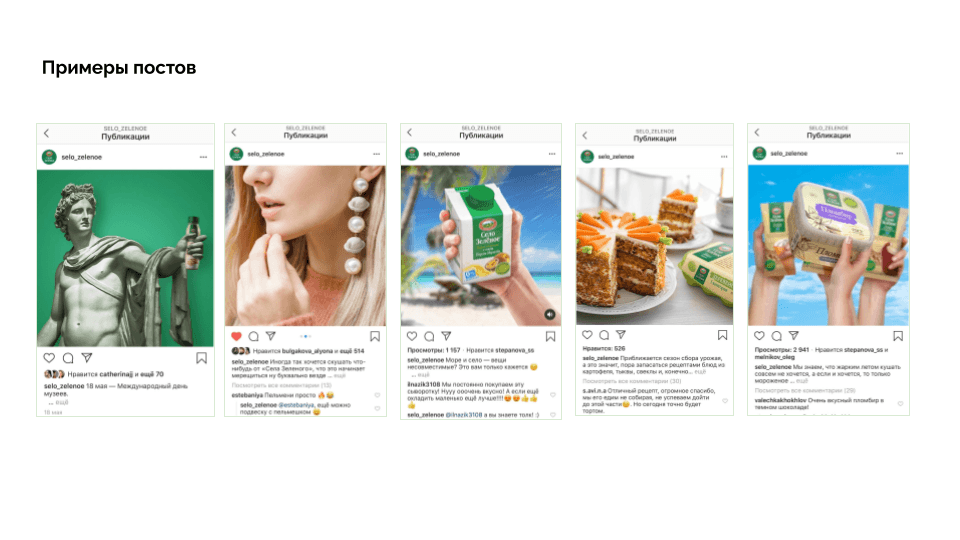 «Село Зеленое» был очередным аккаунтом в Инстаграме о молочной продукции. У бренда полностью отсутствовали фотографии продуктов, предназначенные для использования в соцсетях. Регулярные съемки контента невозможны в условиях ресурсных ограничений проекта.