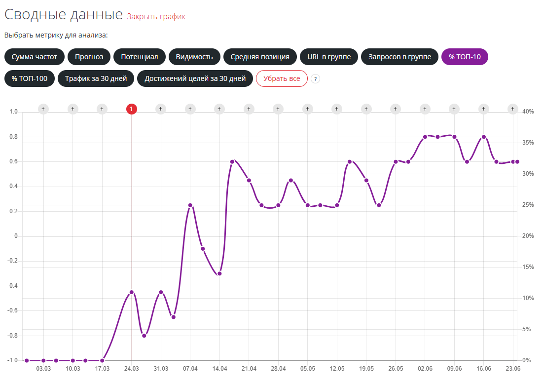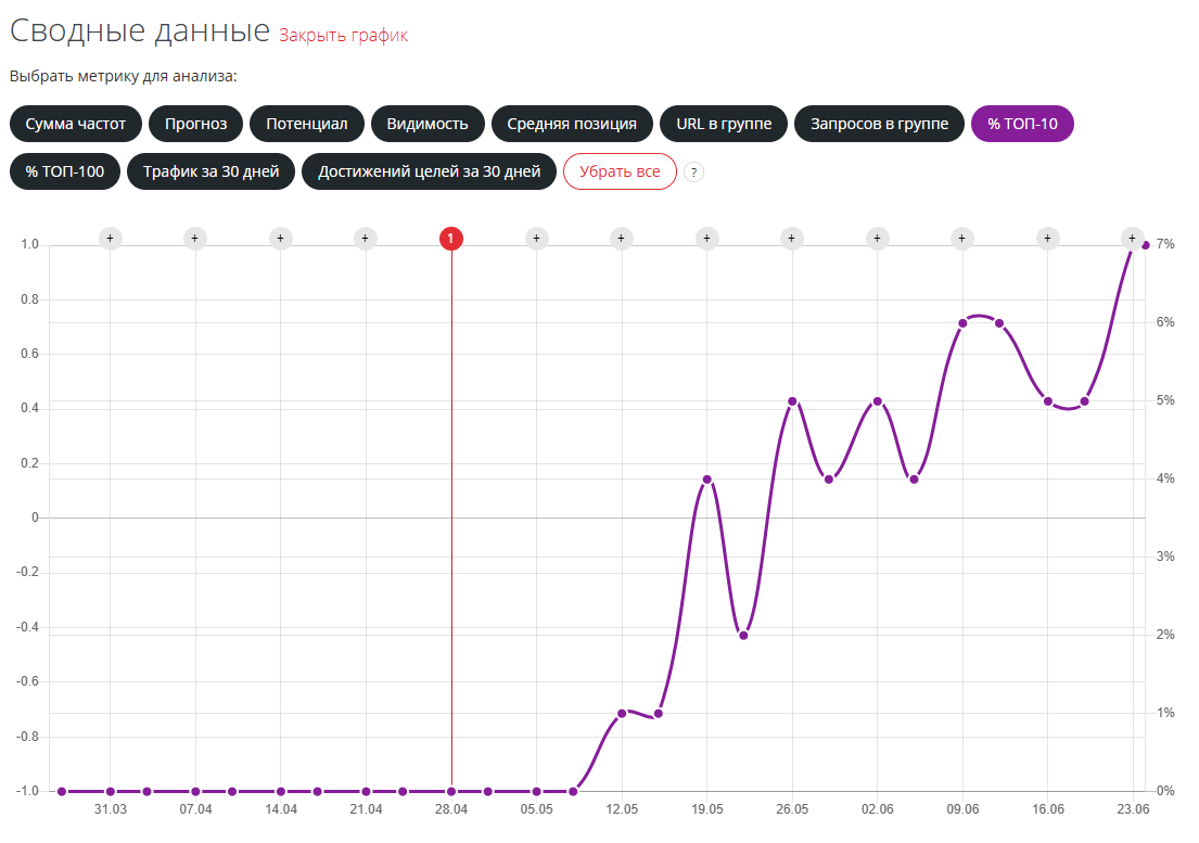 Мониторинг мы проводим в модуле ведения проектов Пиксель Тулс — комплексном сервисе, который отслеживает десятки параметров сайта. В кейсе использованы скрины из SEO-модуля.