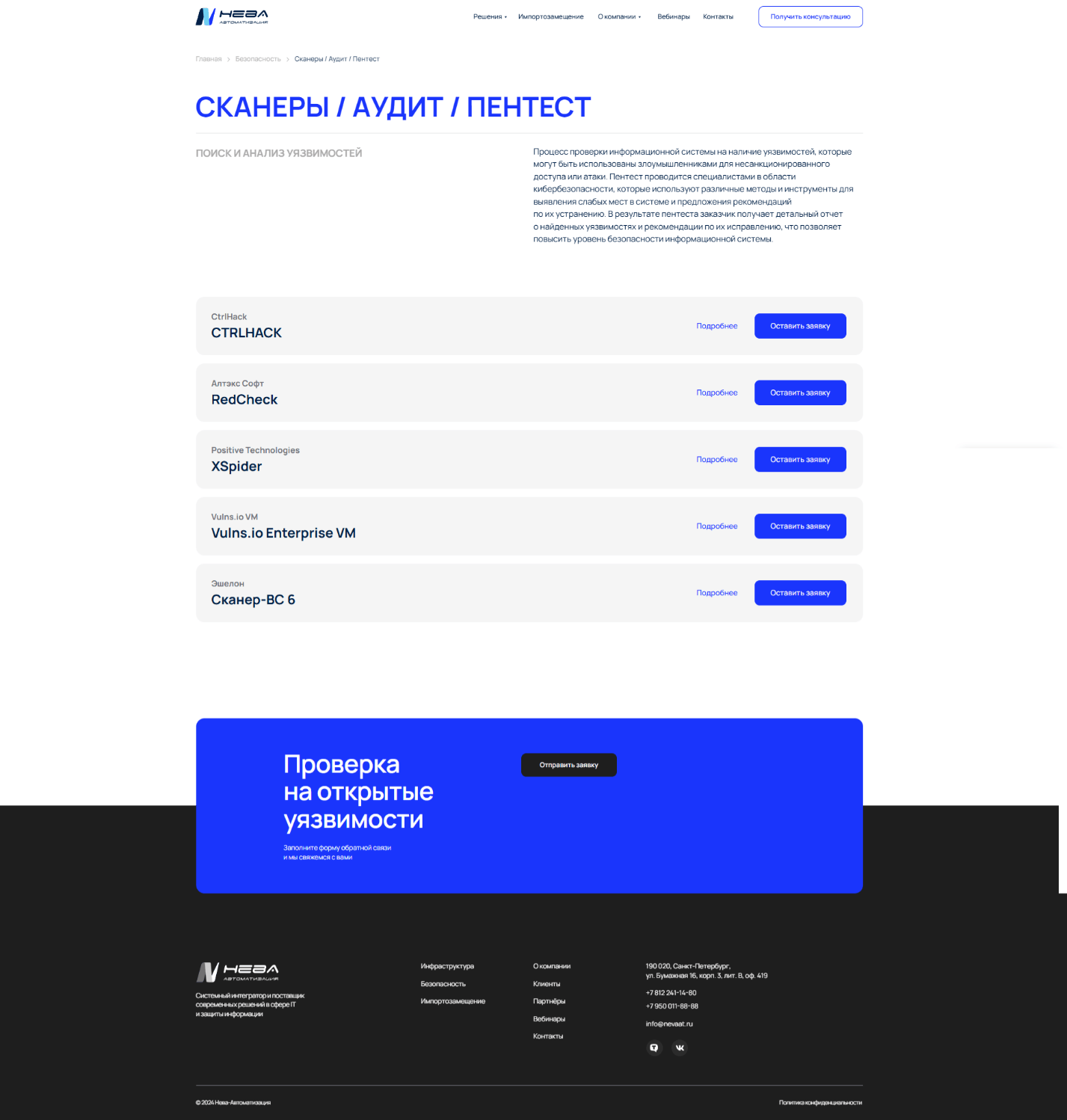 — Клиент: ООО «Нева-Автоматизация» — IT-интегратор и поставщик решений по кибербезопасности, сетевой инфраструктуре и автоматизации.