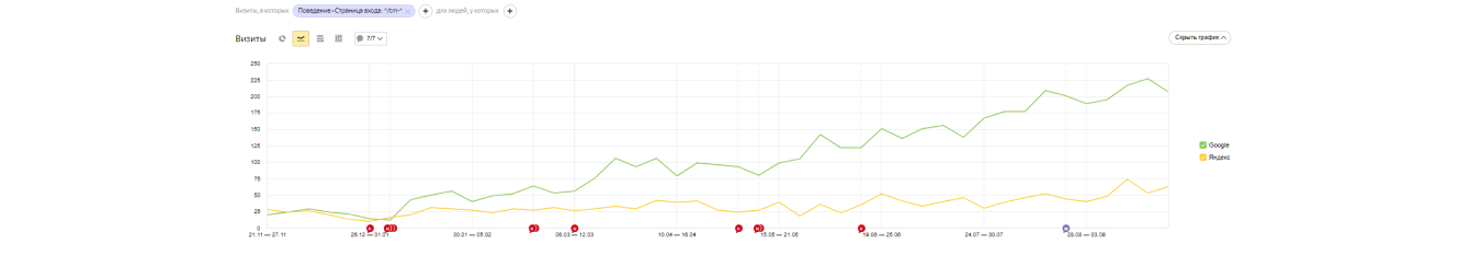 На первом этапе мы получили основной рост трафика за счет исправления технических ошибок и корректировки исходного кода.