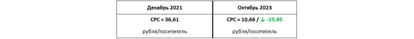 Стоимость привлечения посетителя без учета поискового трафика по брендовым запросам снизилась на 71%.