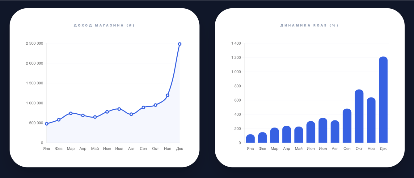 Только работая в единой связке (контент готовит почву, SMM прогревает, таргет и контекст конвертируют), мы смогли сохранить высокие темпы роста в течение всего года и увеличить оборот магазина на 30%.