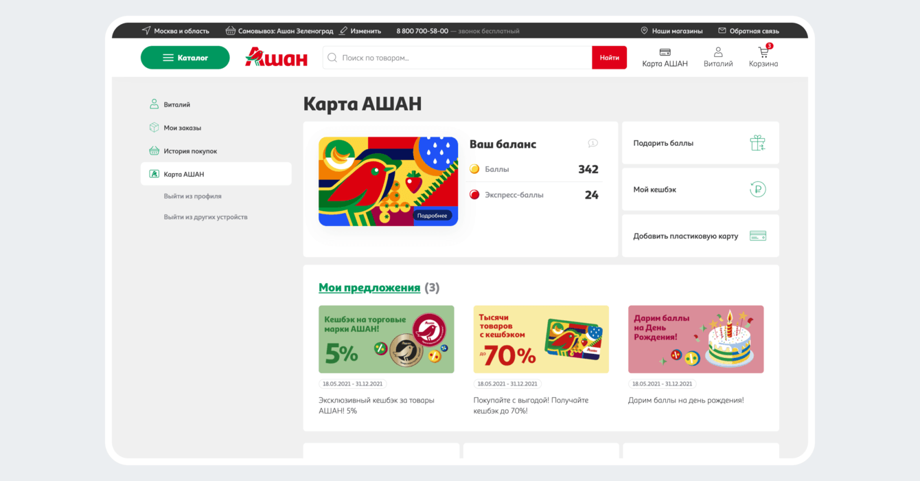 Команда Гринсайта отвечала за работу программы лояльности в личном кабинете сайта и backend-части мобильного приложения.